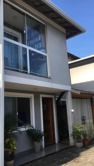 Casa duplex com 2 suítes, armário no banheiro, box blindex, cozinha americana, área de serviço, sala, churrasqueira coberta