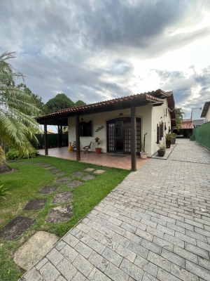 Imóvel de 3 quartos, sendo 2 suítes, espaço gourmet com churrasqueira coberta, piscina com cascata, chuveirão, lavanderia e garagem para 5 carros