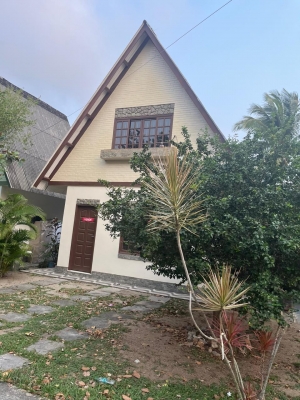 Chalé com 1 quarto, sala, cozinha, banheiro, área de serviço, churrasqueira, uma quadra de distância da praia
