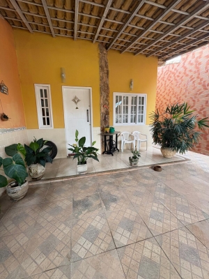 Casa de 3 quartos com 2 suítes, sala, cozinha americana, uma suíte externa, banheiro externo, churrasqueira coberta, chuveirão, garagem